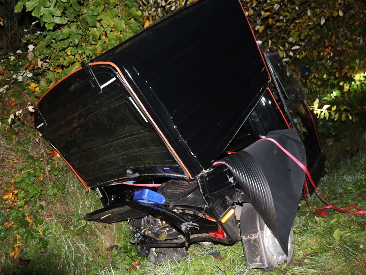 Löhne - (jd) Ein 16-Jähriger aus Hüllhorst fuhr gestern (13.11.), um 6.50 Uhr mit seinem Piaggio-Kastenwagen auf der Herforder Straße in Richtung Herford. Unmittelbar hinter ihm befand sich ein 30-jähriger Löhner mit seinem Audi. Dieser nahm den dreirädrigen Kastenwagen erst spät vor ihm wahr, sodass er kurz vor der Einfahrt zur Falscheider Straße auf das Gefährt auffuhr. Durch den Aufprall wurde die Piaggio noch ein paar Meter von dem Audi nach vorne und dann im weiteren Verlauf über die Fahrbahn geschoben. Zunächst kam das Kleinkraftrad dann am Fahrbahnrand der entgegengesetzten Fahrtrichtung zum Stehen. Der 16-Jährige konnte sich mit Hilfe des Audi-Fahrers aus seinem Fahrzeug befreien, dann fiel die Piaggio in den Straßengraben. Mittels eines hinzugerufenen Rettungswagens wurde der 16-Jährige in ein nahegenes Krankenhaus gebracht. Dieses konnte er nach einer ambulanten Behandlung gemeinsam mit seinen über den Unfall benachrichtigten Erziehungsberechtigten wieder verlassen. Für die Dauer der Unfallaufnahme blieb die Herforder Straße in beide Fahrtrichtungen gesperrt. Der Sachschaden liegt bei rund 12.000 Euro.