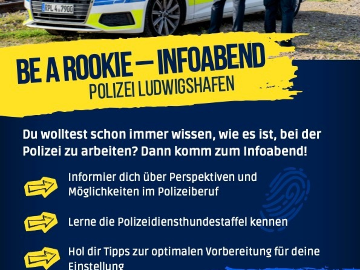 Melde dich jetzt unter Angabe deines Namens, deines Alters und deiner telefonischen Erreichbarkeit per E-Mail an: piludwigshafen1.einstellungen@polizei.rlp.de. Anmeldeschluss ist der 21.01.2026.