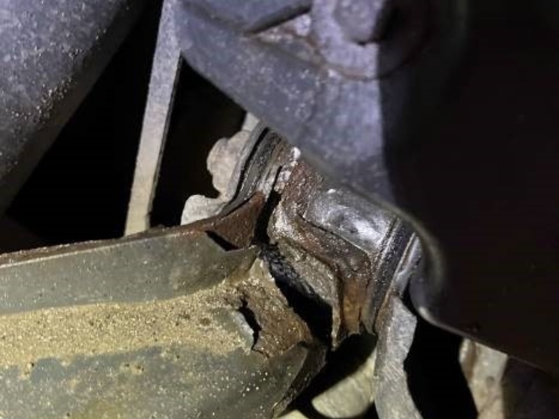 Die zuvor festgestellten Mängel bestätigten sich vollumfänglich. Es wurden teilweise schwerste technische Mängel festgestellt. Einer der Mängel veranlasste selbst die erfahrenen Prüfingenieure zu einer Zusammenkunft an der Lenkung. Hier zeigte sich ein fast vollständig gebrochener Querlenker (Foto). Das Urteil der Fachleute: ein kapitaler Schaden stand unmittelbar bevor, der das Wegknicken des rechten Vorderrades zur Folge gehabt hätte. Auch die komplette Bremsanlage des Anhängers erwies sich als funktionslos.