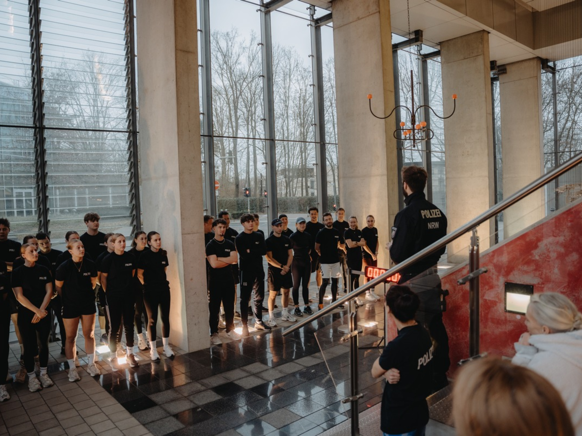 Die Kommissaranwärterinnen und -anwärter haben gemeinsam das Treppenhaus insgesamt 1.232 Mal erklommen und damit stolze 4.928 Euro für die Polizeistiftung NRW und den Weißen Ring gesammelt.
