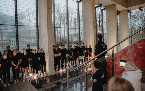 Arnd Breitkopf von der Polizeistiftung NRW zeigte sich begeistert von der vorweihnachtlichen Aktion: "Ich finde es bemerkenswert, dass sich junge Kolleginnen und Kollegen die sich noch am Berufsanfang befinden, bereits in dieser Form für die Polizeifamilie engagieren." Auch der Weiße Ring war vor Ort und überzeugte sich mit ihrem Vertreter René Butyka von den Höchstleistungen im wahrsten Sinne des Wortes. Die Polizeikurse absolvierten die Läufe in Gruppen von jeweils etwa 25 Personen, die nacheinander das LVM-Treppenhaus hochstiegen. In 40 Minuten gaben die angehenden Polizistinnen und Polizisten ihr Bestes, um so oft wie möglich hinaufzulaufen - jeder Lauf bedeutete wertvolles Geld für den guten Zweck. Nach 40 Minuten wechselten die Kurse, und die nächsten Anwärterinnen und Anwärter zeigten vollen Einsatz, um die Gipfel zu erklimmen.