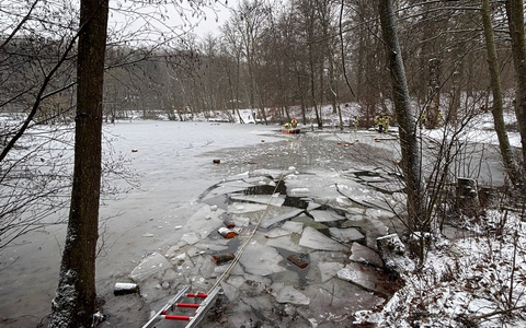 FW Menden: Feuerwehr Menden übt Eisrettung auf dem Hexenteich