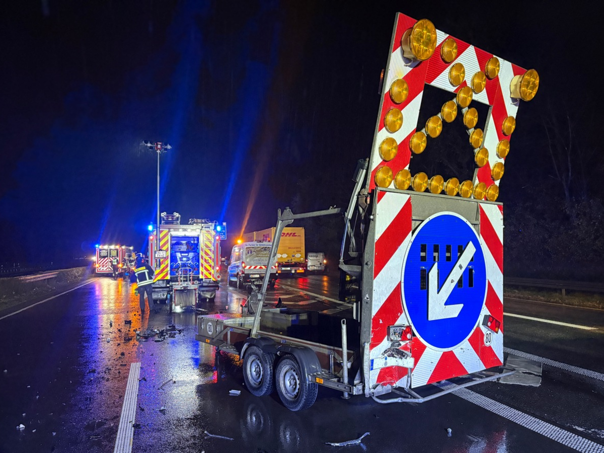Die Mitarbeiter der Baustellenabsicherung befanden sich zum Unfallzeitpunkt nur wenige Meter vor dem Anhänger, diese blieben glücklicherweise unverletzt. Für die Rettungsmaßnahmen musste die Hauptfahrbahn voll gesperrt werden, der Verkehr konnte aber über die Nebenfahrbahn des Autobahnkreuzes abgeleitet werden.