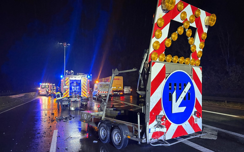 FW Moers: PKW kollidiert mit Absicherungsanhänger auf der A57