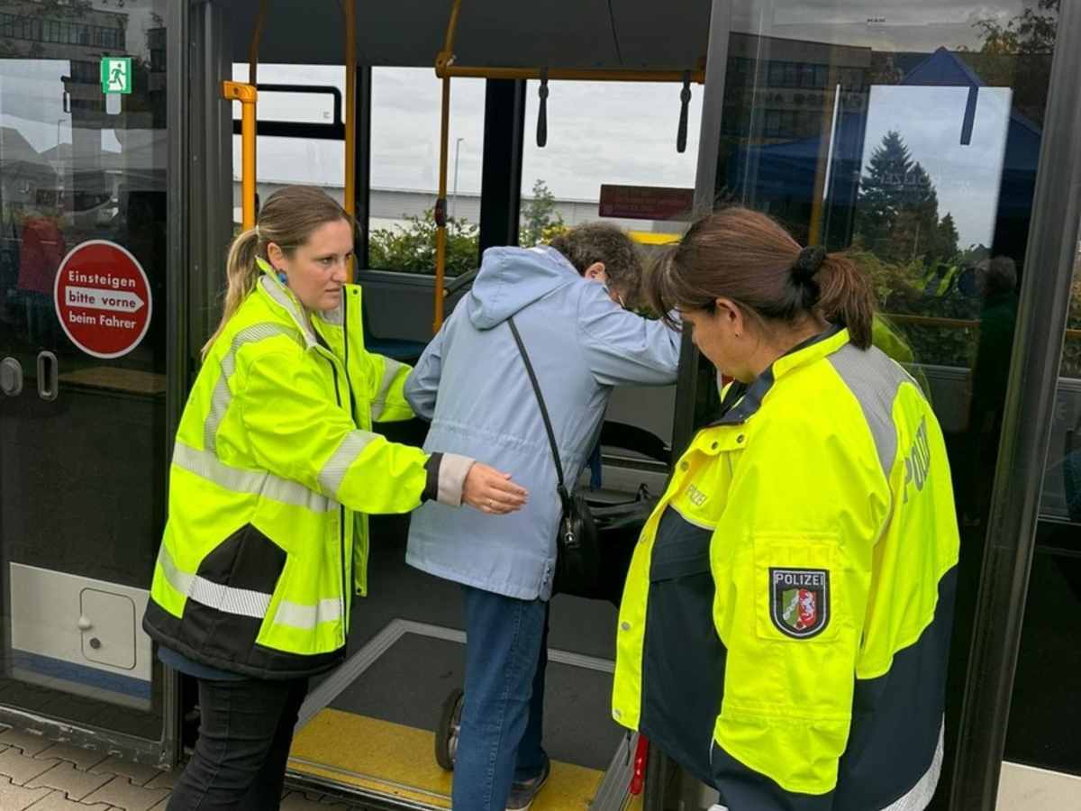02.10.2025 - 12:30:47 | presseportal.deDen Auftakt bildete am Mittwoch, den 17.09.25, der Rollatortag auf dem Gelände des Edeka Gerdes in Moers-Utfort. Hier konnten Seniorinnen und Senioren das sichere Ein- und Aussteigen aus einem Linienbus der NIAG mit den Verkehrssicherheitsberatern der Polizei trainieren. Dabei gab es praktische Tipps für mehr Sicherheit im Alltag und mehr Selbstvertrauen bei der Nutzung öffentlicher Verkehrsmittel.