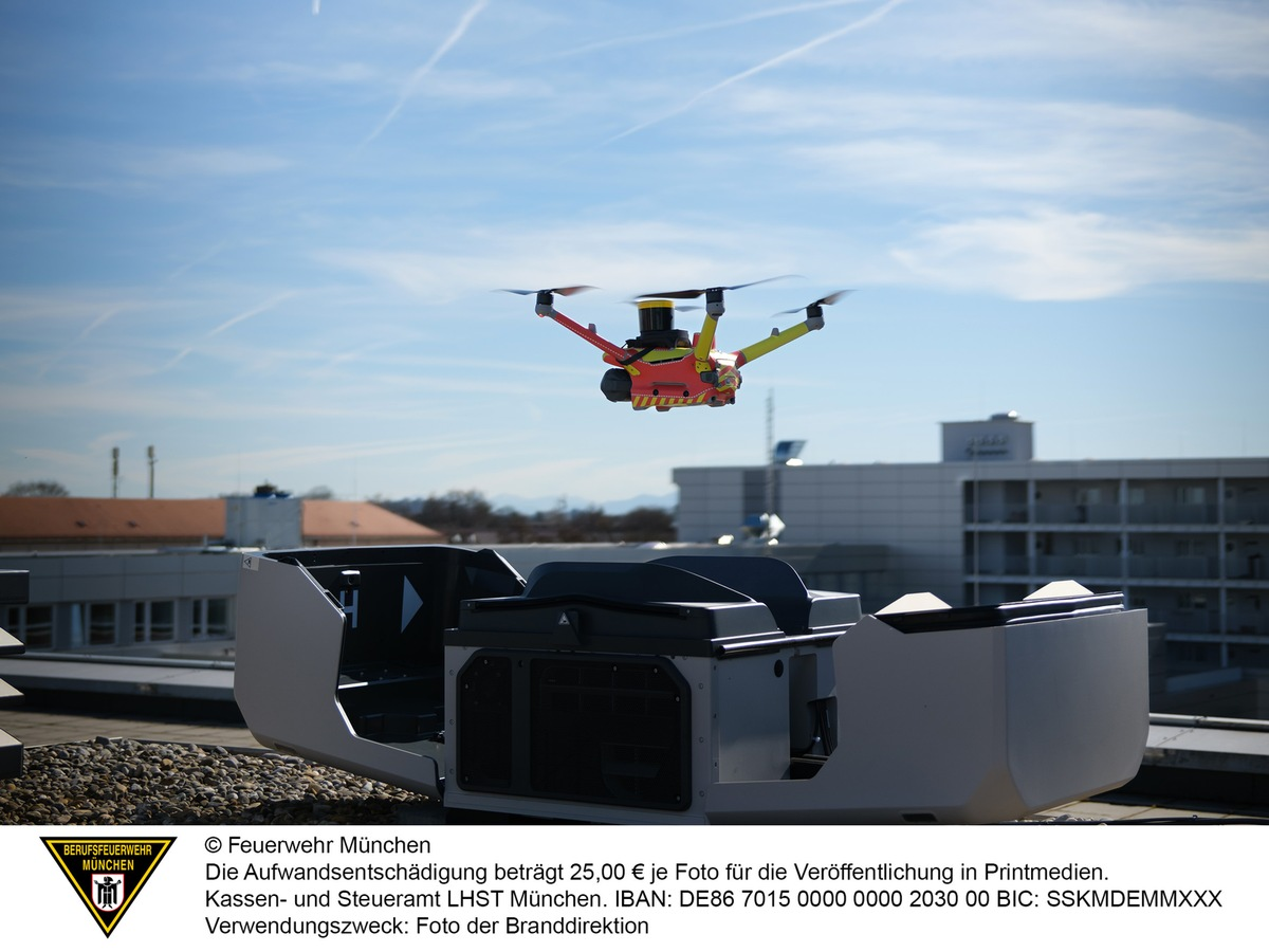 Christian Schnepf, Leiter der Abteilung "Einsatz-Informations- und Kommunikationstechnik" bei der Feuerwehr München ging bei der Pressekonferenz auf die Vorteile der automatisierten Drohnen für die Einsatzkräfte ein: "Durch die Übertragung von Bildern der Einsatzstelle in die Führungsfahrzeuge kann die Einsatzleitung Entscheidungen deutlich früher treffen und damit die Einsatzmaßnahmen schon vor dem Eintreffen strukturieren. Das kann ein entscheidender Zeitgewinn für Einsatzkräfte und Betroffene sein."