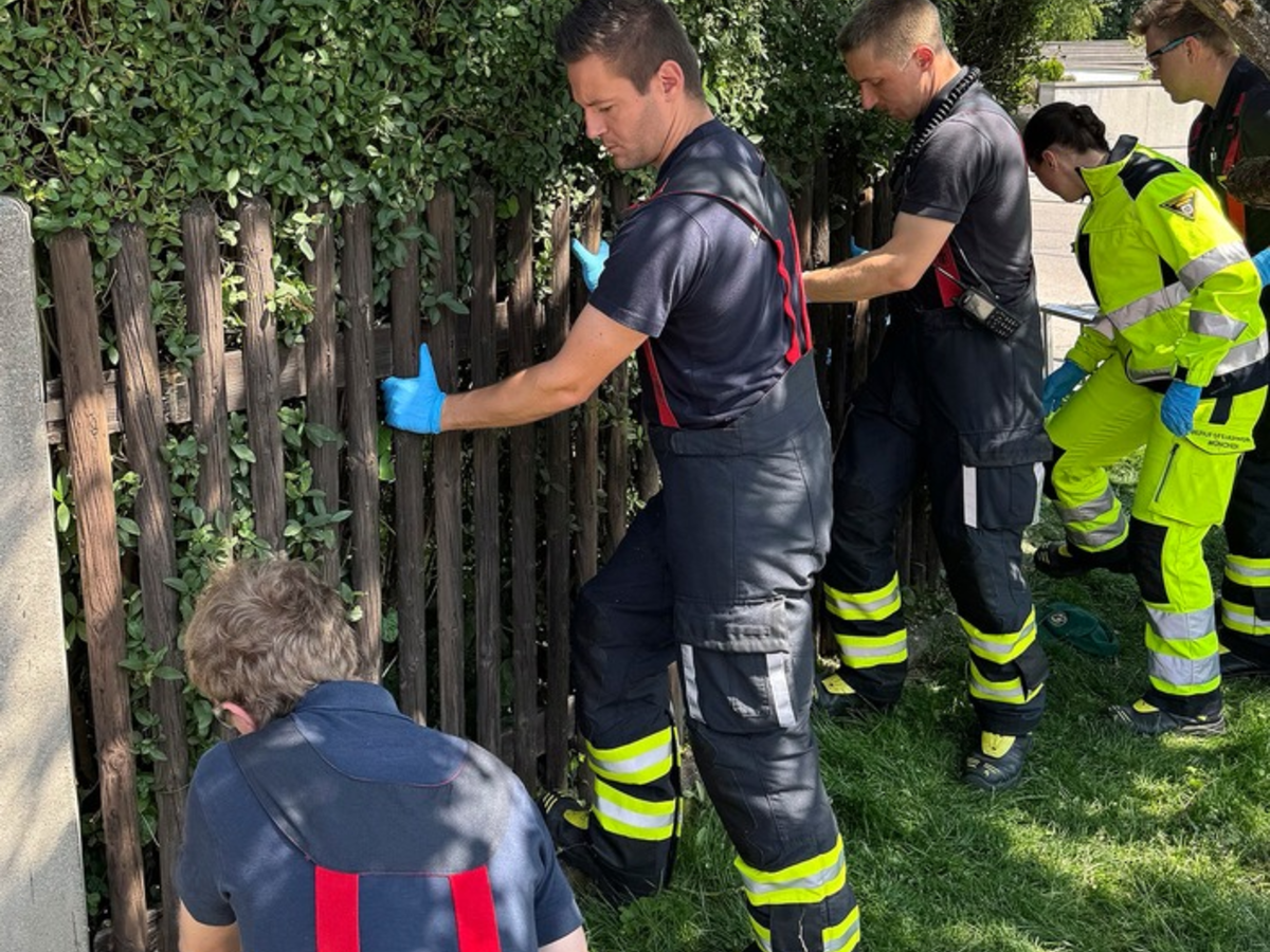 Die Feuerwehr entfernte ein Element des Gartenzauns mittels Säbelsäge um ihn zu befreien. Der 86-Jährige wurde vom Rettungsdienst durchgecheckt, konnte jedoch ohne größere Verletzungen zu Hause bleiben. Das entfernte Gartenzaunelement wurde von den Einsatzkräften provisorisch wieder eingesetzt.