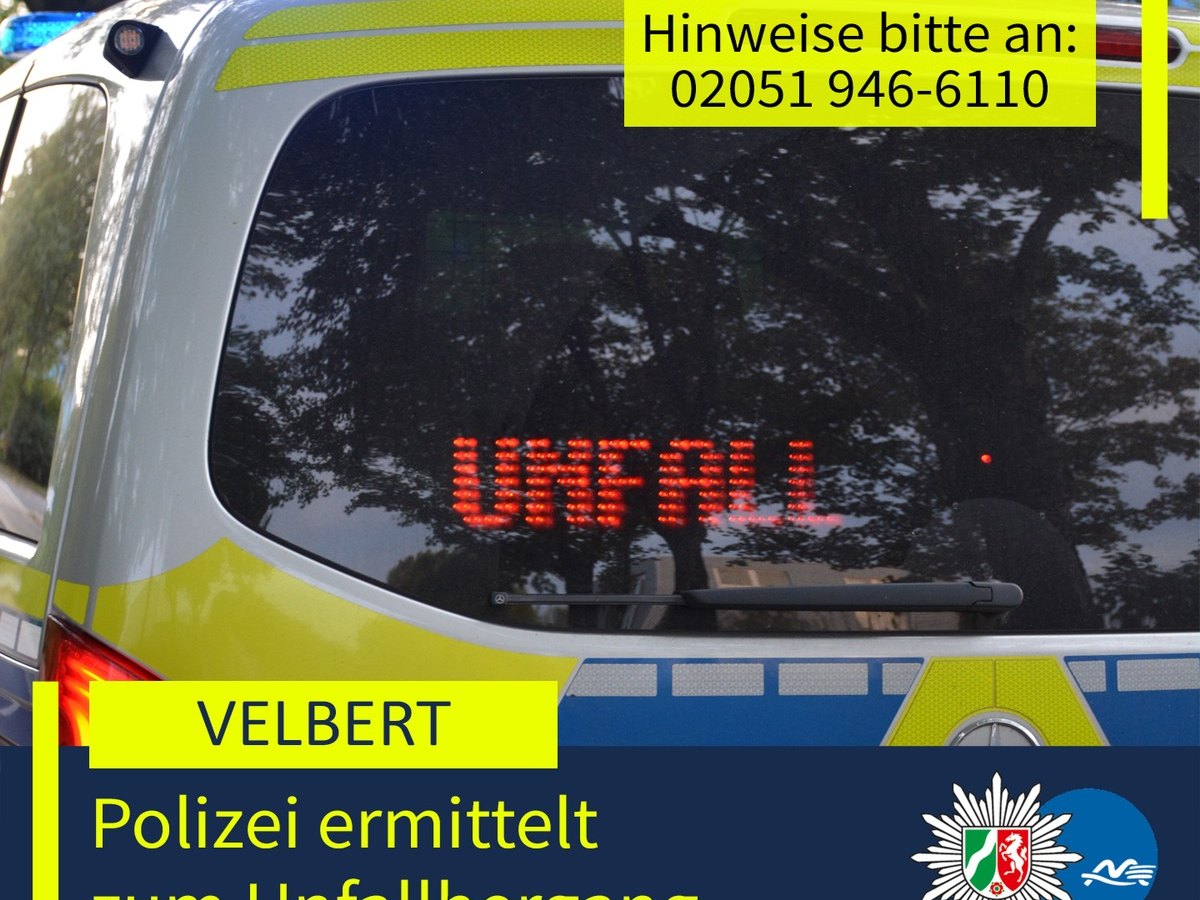 Um den genauen Unfallhergang zweifelsfrei und abschließend klären zu können, bittet das mit den Unfallermittlungen betraute Verkehrskommissariat Nord der Kreispolizeibehörde Mettmann Zeuginnen oder Zeugen, die den Unfall möglicherweise beobachtet haben, sich mit der Polizei in Velbert in Verbindung zu setzen. Die Wache ist hierzu jederzeit unter der Rufnummer 02051 946-6110 erreichbar.