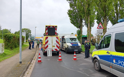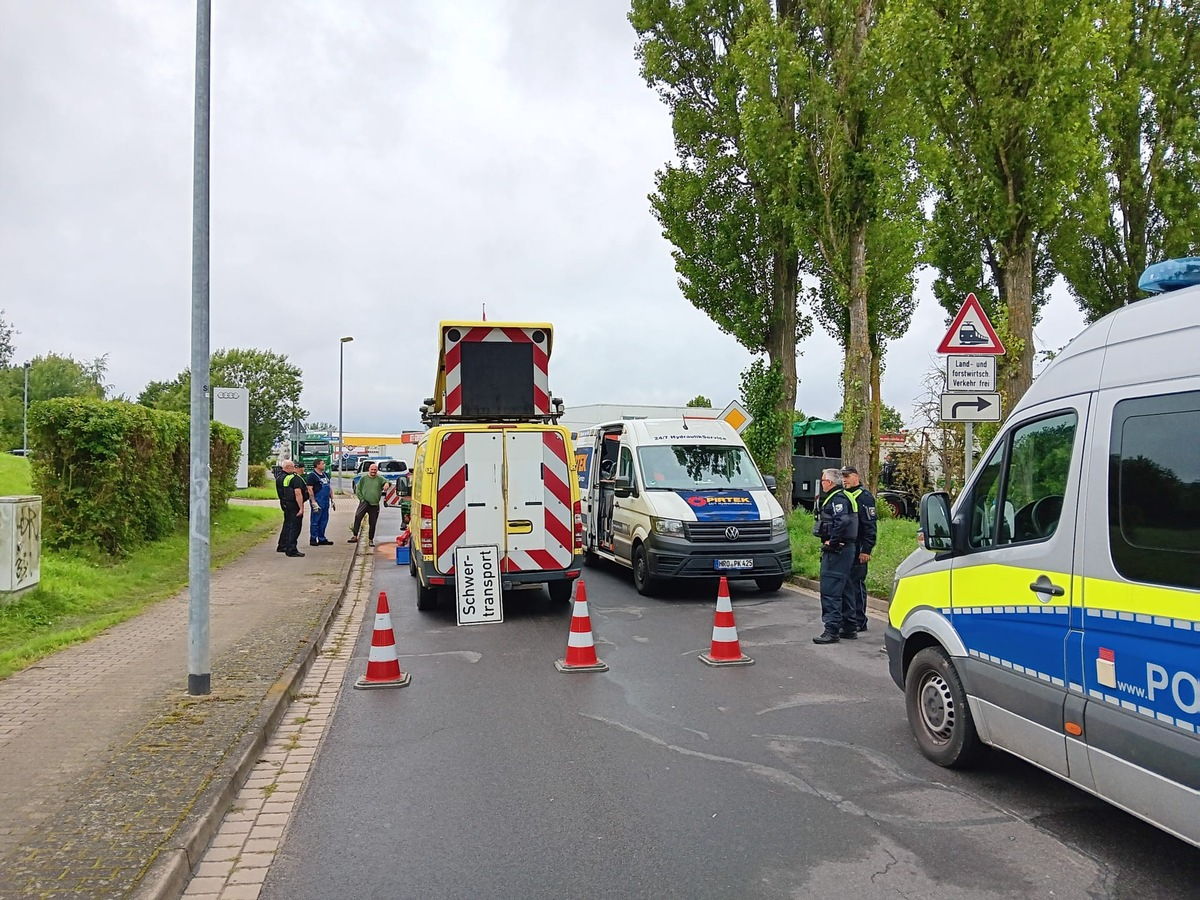 04.08.2025 - 11:40:55 | presseportal.deFür alle LKW heißt das aktuell: kein Durchkommen. PKW könnten notdürftig an der blockierten Stelle vorbeikommen.