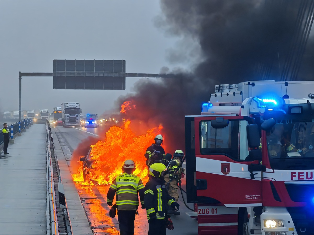 15.01.2026 - 07:58:42 | presseportal.deGlücklicherweise konnte der Fahrer, der den Brand während der Fahrt bemerkte, das Fahrzeug zum Stehen bringen und das Fahrzeug unverletzt verlassen. Nachfolgende Fahrzeuge konnten rechtzeitig ausweichen oder anhalten, so dass es zu keinen Folgeunfällen kam. Ein Team unter Atemschutz löschte das Fahrzeug, während der Löscharbeiten kam es zu teilweisen Sperrungen der Autobahn. Nach Abschluss der Löschmaßnahmen konnte die Einsatzstelle an die Polizei übergeben werden. Die Ursache für den Brand des Diesel-Pkw ist unbekannt.