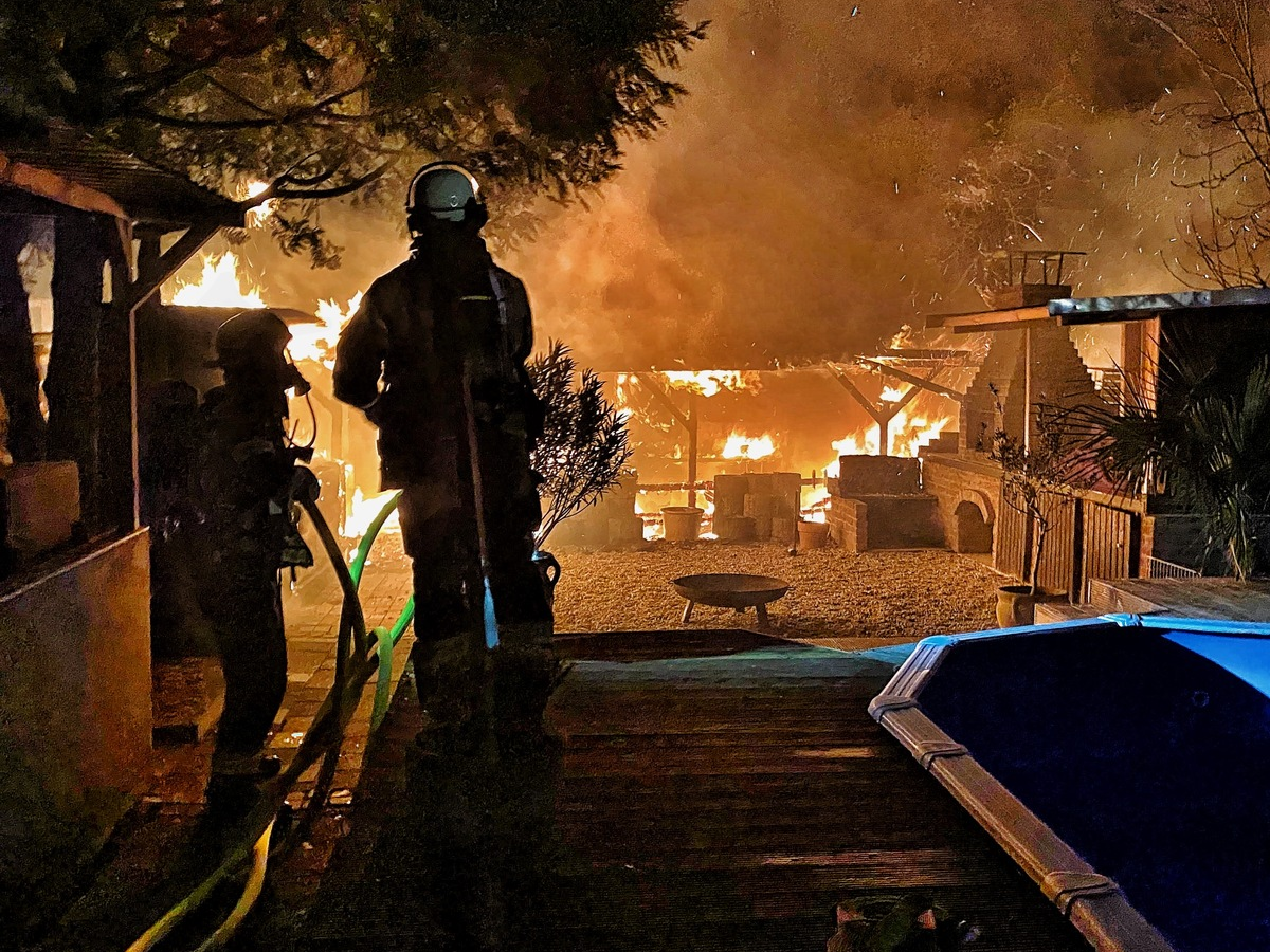 Besonderer Einsatz der Nacht: Brand einer Gartenlaube Um 01:54 Uhr wurde die Feuerwehr zu einem Brand eines Gartenhauses mit Anbau an einem Einfamilienhaus alarmiert. Beim Eintreffen der ersten Einsatzkräfte stand das Gebäude bereits in Vollbrand, das Feuer hatte sich bereits auf angrenzende Gebäudeteile ausgebreitet. Mit drei Strahlrohren von drei Seiten gelang es den eingesetzten Teams, das Feuer nach rund 40 Minuten unter Kontrolle zu bringen. Das Einsatzende war gegen 04:00 Uhr. Das betroffene Gartenhaus mit Werkstattunterstand (ca. 6 × 8 Meter) wurde vollständig zerstört. Personen kamen bei dem Einsatz nicht zu Schaden.