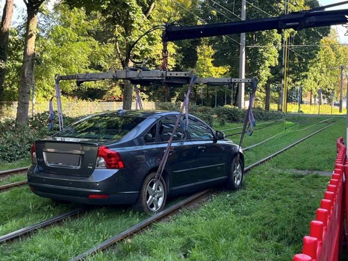 Fahrt ins Abseits - Pkw strandet auf Straßenbahngleisen