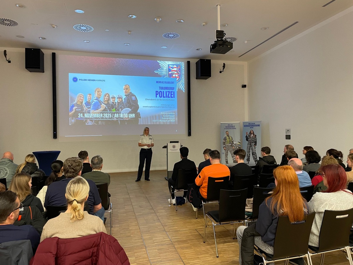 25.11.2025 - 18:43:48 | presseportal.de"Traumberuf Polizei - unter diesem Motto steht der heutige Abend. Und ich kann Ihnen bestätigen: Nach über 20 Jahren bei der Polizei Hessen würde ich mich jederzeit wieder so entscheiden", begrüßte Christopher Leidner, Leiter der Presse- und Öffentlichkeitsarbeit, die Gäste.