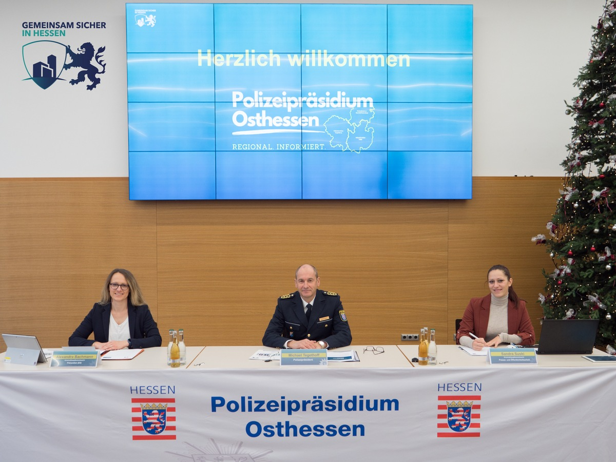 Fulda. "Prävention spielt eine grundlegend wichtige Rolle in der Kriminalitätsbekämpfung, denn jede verhinderte Straftat ist ein Erfolg für die Polizei sowie Bürgerinnen und Bürger", verdeutlicht Polizeipräsident Michael Tegethoff. Bereits seit Beginn des Monats Dezember öffnet das Polizeipräsidium Osthessen auf dem behördeneigenen Instagram-Kanal "polizei_oh" jeden Tag eins von 24 Adventskalendertürchen zum Thema Sicherheit. Zum Jahresende nimmt die Präventionsinititative im Zuge der landesweiten Kampagne "Gemeinsam Sicher in Hessen" offensiv Fahrt für die osthessische Region auf. Vor diesem Hintergrund begrüßte Michael Tegethoff alle interessierten Medienvertreterinnen und -vertreter am Freitag (15.12.) zu einem Pressegespräch im Präsidium in Fulda.