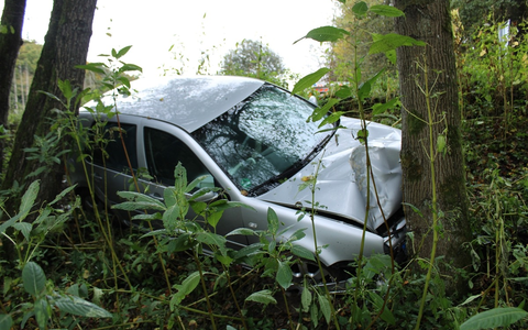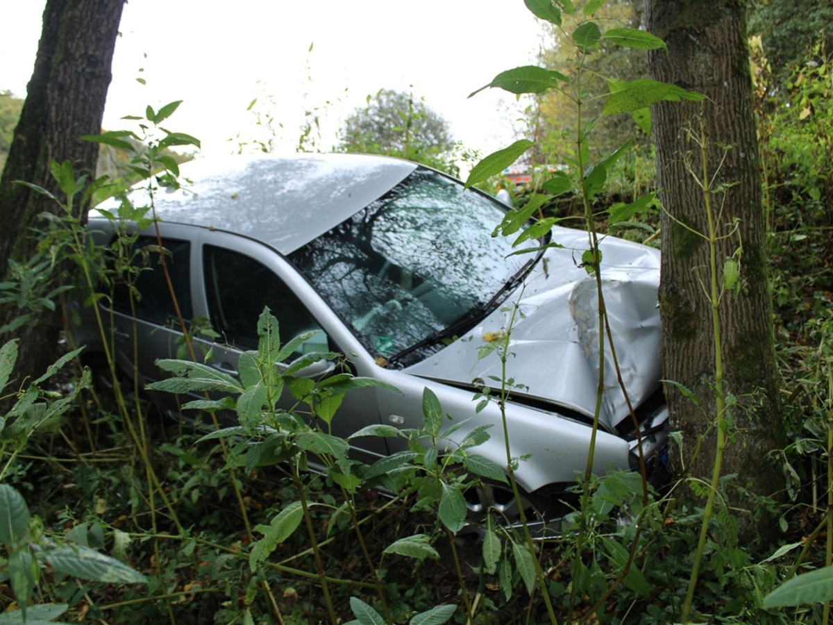 Anschließend kam sie von rechts von der Fahrbahn ab und fuhr mehrere Meter im Grünstreifen einen Straßengraben herab, bis sie frontal mit einem Baum kollidierte.