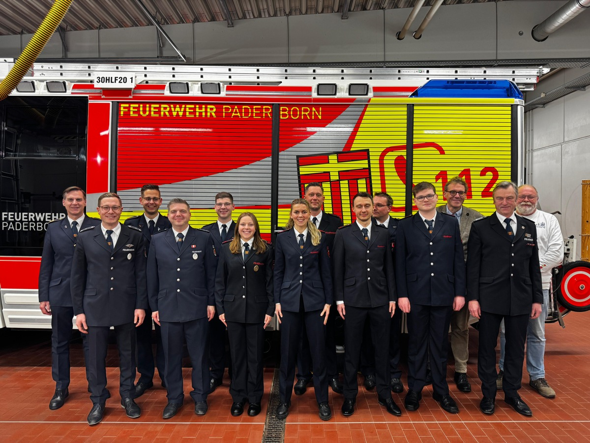 Julia Kimmel, Andreas Fürst, Raphael Splett, Christian Pott zum Feuerwehrmann-/frau Sara Grabitz zur Oberfeuerwehrfrau Marla Wernekenschnieder zur Unterbrandmeisterin Philip Lütke-Bexten , Christian Bielefeld zum Brandmeister Jan Philip Reseke zum Hauptbrandmeister Benjamin Follert zum Brandoberinspektor