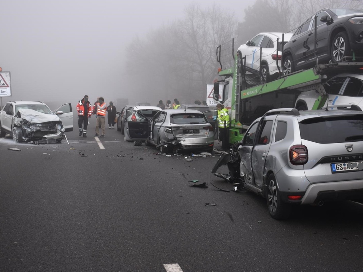 Verden. Zu drei Unfällen mit insgesamt elf beteiligten Fahrzeugen kam es am Samstagmittag gegen 12:40 Uhr auf der A 27 zwischen den beiden Verdener Abfahrten. Da der Verkehr in Richtung Bremer Kreuz aufgrund einer Vollsperrung an der Anschlussstelle Verden-Nord abgeleitet wurde, kam es davor zu einer leichten Staubildung. Einige Fahrer und Fahrerinnen hatten ihre Geschwindigkeit nicht den Sichtverhältnissen bei Nebel angepasst, so dass es in der Folge zu mehreren Unfällen kam. Glücklicherweise kam es nicht zu schweren Folgen, sondern endete mit leichten Verletzungen bei insgesamt fünf beteiligten Personen und Sachschäden, die die Polizei insgesamt auf über 100.000 EUR schätzt. Zunächst übersah ein 52jähriger Mercedesfahrer aufgrund nicht angepasster Geschwindigkeit einen am Stauende stehenden Lkw, der mit hochwertigen Fahrzeugen beladen war. Es kam hier zu einer leichten Kollision ohne Verletzte. Während der Unfallaufnahme übersah eine 33jährigen VW-Fahrerin aus Peine das Stauende hinter der abgesicherten Unfallstelle und beschädigte wegen ihrer deutlich zu hoch gewählten Geschwindigkeit fünf wartende Fahrzeuge. Diese wurden zum Teil schwer beschädigt und mussten abgeschleppt werden. Im immer länger werdenden Stau kam es wenige hundert Meter vorher zu einem weiteren Unfall zwischen zwei Pkw und einem Transporter. Hierbei übersah eine 51jährige Bremerin das Stauende und fuhr mit ihrem VW Caddy auf zwei weitere Fahrzeuge auf. Die Autobahn musste für die Zeit der Unfallaufnahme und Aufräumarbeiten mehrere Stunden zusätzlich ab der Anschlussstelle Verden-Ost gesperrt werden, was auf den Straßen im Verdener Stadtgebiet deutlich zu spüren war.