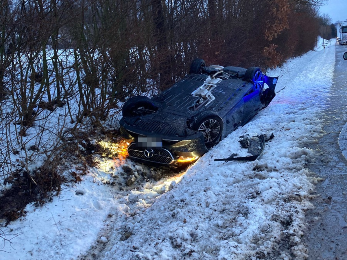 Bad Driburg - Am Montag, 16. Februar, kam es auf der L828 in Bad Driburg-Neuenheerse zu einem Verkehrsunfall. Gegen 17 Uhr befuhr ein 29-jähriger Mann aus Detmold mit einem grauen Mercedes die Landstraße von Bad Driburg in Richtung Willebadessen. Auf Höhe der Abfahrt Gut Wertheim setzte der Fahrer zu einem Überholvorgang an. Auf winterglatter Fahrbahn verlor er dabei die Kontrolle über sein Fahrzeug und kam von der Straße ab. Der Pkw überschlug sich mehrfach und kam schließlich auf dem Dach zum Stillstand. Der 29-Jährige konnte sich selbstständig aus dem Fahrzeugwrack befreien. Er erlitt leichte Verletzungen und wurde mit einem Rettungswagen in ein Krankenhaus gebracht. Der Mercedes war nicht mehr fahrbereit und musste geborgen werden. Der entstandene Sachschaden wird auf rund 20.000 Euro geschätzt. Während der Unfallaufnahme wurde der Verkehr an der Unfallstelle vorbeigeleitet./rek