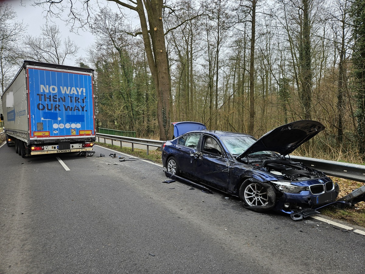 Noch vor Eintreffen der Einsatzkräfte konnte sich der Mann befreien. Er zog sich zum Glück nur leichte Verletzungen zu. Der Lkw-Fahrer blieb unverletzt. An den Fahrzeugen entstand erheblicher Sachschaden. Die Feuerwehr Rhade musste neben der Absicherung der Einsatzstelle und Sichern des Brandschutzes nicht weiter tätig werden und konnte nach kurzer Zeit wieder einrücken. Während der Bergungsarbeiten war die L122 komplett gesperrt. Beamten der Selsinger Polizei haben die Ermittlungen aufgenommen.