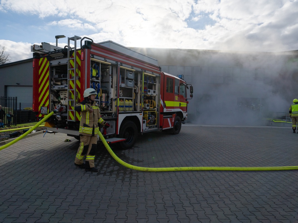Rheurdt-Schaephuysen - Vor gut einem halben Jahr wurde das Schaephuysener Gewerbegebiet um ein ansässiges Unternehmen reicher. Mit Fertigstellung des Gewerbeobjektes der Firma agaSAAT kam nicht nur der flächenmäßig größte, sondern auch aus Brandschutzsicht der herausforderndste Komplex hinzu. Das Unternehmen verfügt über eine Brandmeldeanlage (kurz: BMA), welche direkt an die Leitstelle der Feuerwehr angebunden ist. Zudem ist es mit unterschiedlichen brandschutz- und löschtechnischen Einrichtungen wie Rauch-Wärme-Abzugsanlagen und einem ergiebigen Feuerlöschbrunnen auf dem Hof ausgestattet. Nicht zuletzt vor diesem Hintergrund begleitete die Feuerwehr Rheurdt gemeinsam mit der Brandschutzdienststelle des Kreises Kleve bereits eng den Bauprozess. Doch mindestens genau so wichtig war es der Feuerwehr und der geschäftsführenden Familie Arts, die selbst Mitglied im Spielmannszug der Feuerwehr ist, zeitnah nach Fertigstellung des Objekts eine Übung unter realistischen Bedingungen durchzuführen. Am Samstagmittag war es schließlich soweit. Um 16 Uhr ertönten die "Piepser" der Kamerad:innen aus Rheurdt und Schaephuysen. Und auch die Kolleg:innen aus Vluyn wurden mit ihrer Drehleiter alarmiert. Stichwort: Ausgelöste Brandmeldeanlage (BMA). Mit Blaulicht und Martinshorn rückten acht Feuerwehrfahrzeuge und insgesamt mehr als 50 Kräften vor den Augen von Familie und Freunden der Familie Arts sowie Bürgermeister Dirk Ketelaers an. Vor Ort stellte sich heraus, dass es sich nicht wie in der Mehrzahl der BMA-Alarme um einen Fehlalarm handelte. Hingegen drang dichter Rauch aus dem Büro- und Logistiktrakt der Firma. Laut Angaben der Produktionsleitung sei es zu einer Verpuffung bei Service-Arbeiten an einem Gabelstapler gekommen. Ein Mitarbeiter sei dabei schwer verletzt worden und im Rauch gefangen. Die ersten Kräfte der Feuerwehr begaben sich rasch zur Brandmeldezentrale, um die Meldungen der Anlage auszuwerten und sich mit den sogenannten "Laufkarten" auszustatten. Diese erleichtern den Feuerwehrkräften insbesondere in großen Objekten das Vorgehen, da sie sämtliche Räume, Brandmelder und Laufwege ausgehend von der Brandmeldezentrale darstellen. Parallel dazu bereiteten die Einsatzkräfte der Einheit Schaephuysen den Innenangriff und die Menschenrettung vor dem Haupteingang vor. Die Löscheinheit Rheurdt widmete sich in einem zweiten Einsatzabschnitt dem Schutz der benachbarten Gewerbebetriebe mithilfe einer Riegelstellung. Hierbei kamen mehrere Strahlrohre und auch ein mobiler Wasserwerfer zum Einsatz. Die Drehleiter der Löscheinheit Vluyn wurde indes vor dem Gebäude in Stellung gebracht und bekämpfte fiktiven Flammen, die auf eine Holzvertäfelung an der Fassade und das Dach übergriffen. Um ausreichend Wasser für den massiven Löschangriff zur Verfügung zu haben, saugte die Feuerwehr mit zwei Löschfahrzeugen den Brunnen an und prüfte erfolgreich dessen Leistungsstärke. Nach etwa 10 Minuten konnte die vermisste Person durch einen Trupp unter Atemschutz gerettet werden. Weitere Trupps kamen zur Brandbekämpfung im Inneren zum Einsatz. Nach Abschluss umfangreicher Lüftungs- und Aufräumarbeiten war die Übung nach gut einer Stunde beendet. Sie verlief ganz nach den Vorstellungen von Wehrleiter Markus Gehrmann und Einheitsführer Frank Diepers, die die Übung geplant hatten, und agaSAAT Senior-Chef Werner Arts, der sich mit einigen Dankesworten der Übung anschloss. "Wir hoffen, dass wir euch hier niemals im Ernstfall benötigen werden. Aber die Übung hat gezeigt, dass wir uns mit euch jederzeit sicher fühlen können", bekräftigte Arts. Als Dank für den samstäglichen Großeinsatz spendierte die Firma agaSAAT anschließend Grillwürstchen, Kaltgetränke und für jede Einsatzkraft eine kleine Geschenktüte mit einer Auswahl aus dem Produktsortiment.