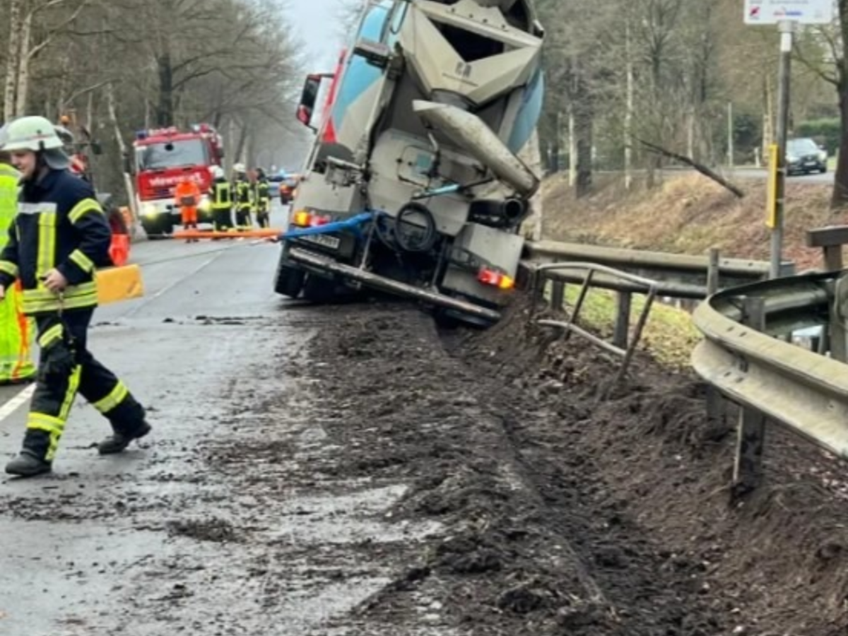 Gnarrenburg: Betonmischer verunfallt - Schutzplanke verhindert Absturz in Kanal