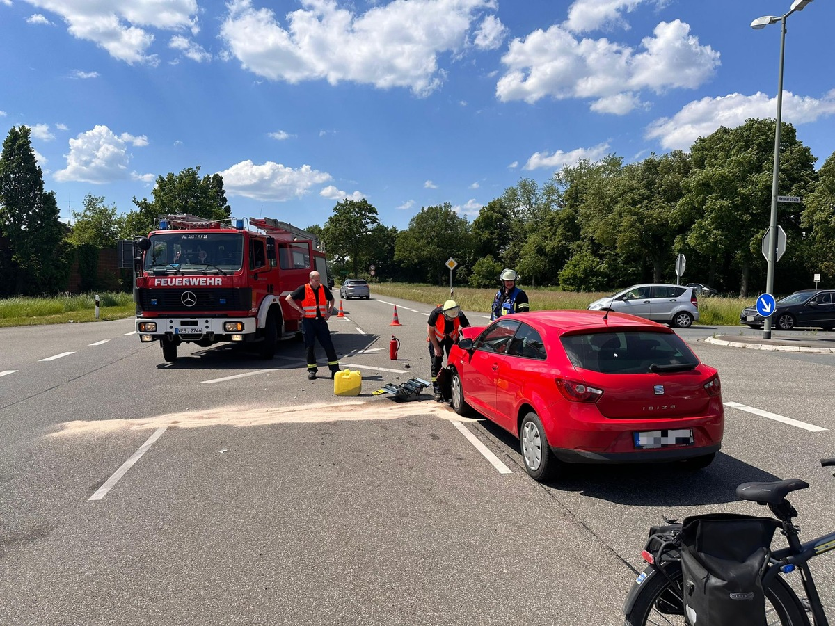 Der Löschzug Schermbeck stellte an der Einsatzstelle den Brandschutz sicher, streute die auslaufenden Betriebsmittel ab und nahm diese anschließend auf.