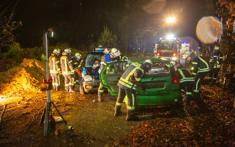 Ein drittes Fahrzeug aus dem englischen Bereich war rechtsgelenkt und seitlich gegen einen Baum geprallt. Die Fahrerin war aufgrund der Aufprallkinematik schwerstverletzt und bewusstlos gewesen und konnte sich nicht eigenständig befreien.