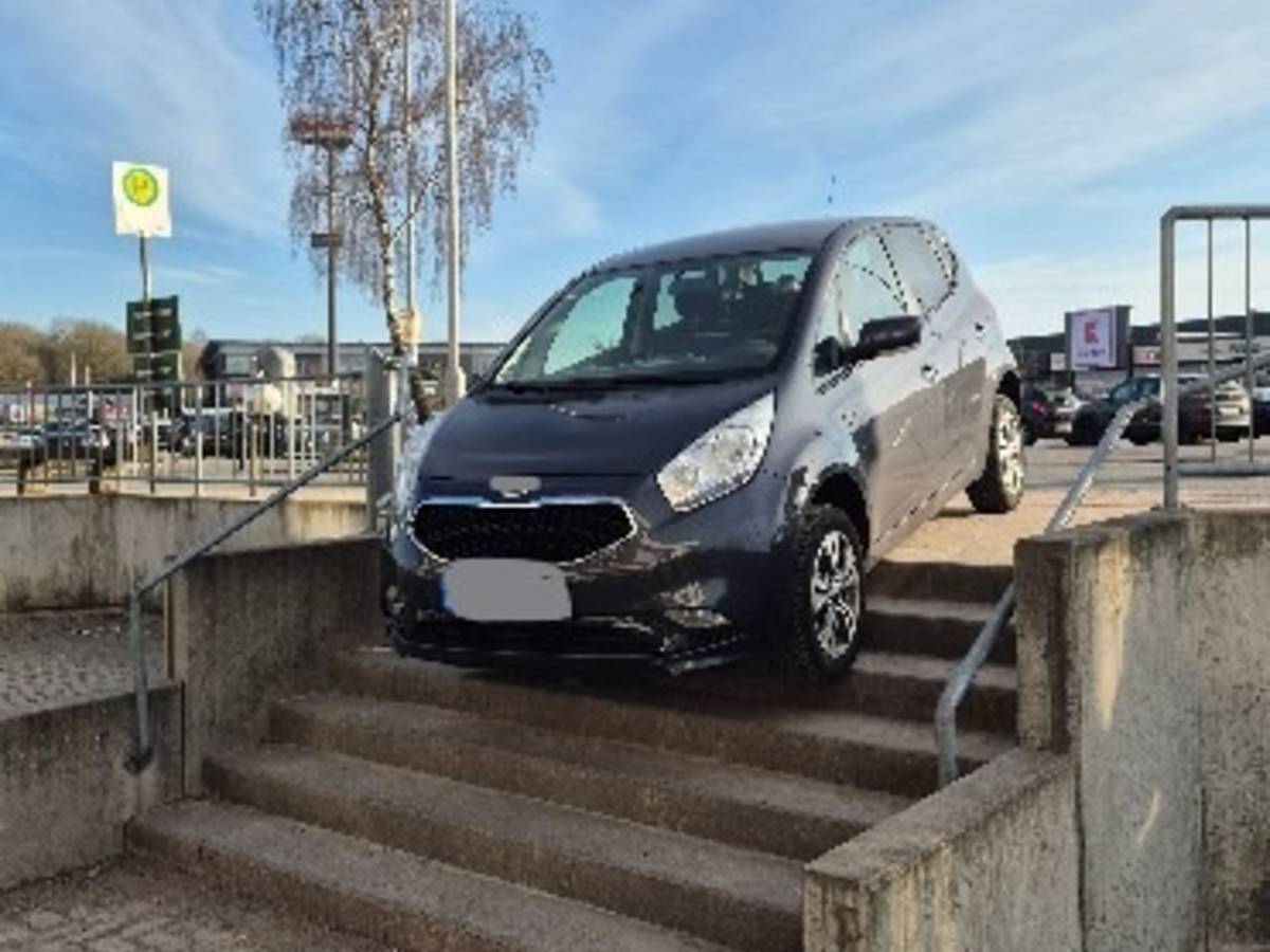 Schwentinental - Am Freitagnachmittag (06.03.2026) ist die Fahrerin eines PKW falsch abgebogen und steckte auf einer Treppe fest. Verletzt wurde niemand. Freitagnachmittag um 16.20 Uhr befuhr eine Fahrzeugführerin die Mergenthaler Straße im Gewerbegebiet Raisdorf. Um auf den Parkplatz eines Drogeriemarktes zu gelangen, bog die Dame fälschlicherweise ein wenig zu früh ab. Als sie ihren Fehler bemerkte, steckte sie bereits auf der Treppe fest. Es kam niemand zu schaden.