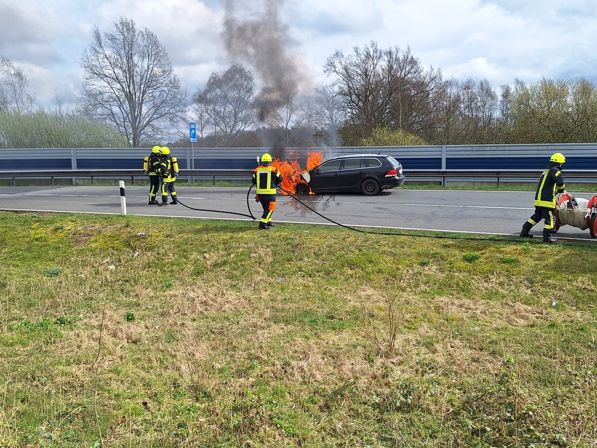 Nach ca. 30 Minuten konnte der Einsatzleiter Feuer aus melden. Im Einsatz war die Feuerwehr mit drei Fahrzeugen und 20 Einsatzkräften. Am Auto entstand ein Totalschaden, zur Schadenshöhe kann seitens der Feuerwehr keine Angaben gemacht werden.