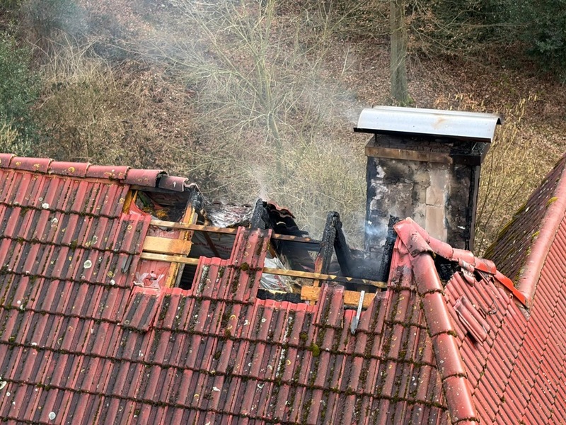 21.02.2026 - 18:04:13 | presseportal.deBereits auf der Anfahrt erkannten die Einsatzkräfte eine starke Rauchentwicklung. Vor Ort bestätigte sich die Meldung: Der Dachstuhl brannte im Bereich eines Kamins. Personen waren zu diesem Zeitpunkt nicht mehr im Gebäude. Die Feuerwehr leitete eine Brandbekämpfung über ein Wenderohr der Drehleiter sowie durch mehrere Trupps unter schwerem Atemschutz von innen ein. Außerdem wurde der Kamin durch die Feuerwehr gekehrt. Der Brand konnte so durch die Feuerwehr unter Kontrolle gebracht und eine weitere Ausbreitung auf den restlichen Dachstuhl verhindert werden.