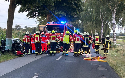 Am gestrigen Abend ist es gegen kurz nach 19:10 h in Brest in der Rehfinger Straße zu einem Verkehrsunfall gekommen, bei dem ein 18-jähriger Autofahrer aus Ahlerstedt schwer verletzt wurde. Der Fahranfänger war zu der Zeit mit seinem Audi A3 auf der Kreisstraße 48 in Fahrtrichtung Brest unterwegs und dann aus bisher ungeklärter Ursache alleinbeteiligt nach rechts von der Fahrbahn abgekommen. Sein Auto geriet in den Seitenraum und prallte frontal gegen einen Baum. Der 18-Jährige wurde in seinem Fahrzeug eingeklemmt und musste von den ca. 30 angerückten Feuerwehrleuten aus Brest und Bargstedt mit schwerem Rettungsgerät befreit werden. Nach der Erstversorgung durch den Notarzt und die Besatzung des Rettungshubschraubers Christoph Hansa sowie eine Rettungswagenbesatzung aus dem Alten Land wurde mit schweren Verletzungen in ein Hamburger Krankenhaus geflogen. Sein Auto wurde bei dem Unfall total beschädigt, der Gesamtschaden wird auf ca. 20.000 Euro geschätzt. Die K 48 musste für die Zeit der Rettungs- und Bergungsmaßnahmen sowie die Unfallaufnahme zeitweise voll gesperrt werden. Zu größeren Behinderungen kam es dabei aber nicht.