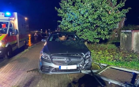 Ein 41-jähriger Mann aus Hollern-Twielenfleth befuhr von Wisch kommend die Straße Lühe in Richtung Grünendeich. Im Ausgang einer leichten Linkskurve kam er nach rechts von der Fahrbahn ab, prallte dort gegen den Kantstein einer Parkbucht, geriet dann nach links und kollidierte links neben der Fahrbahn mit einem Schild. Auf einem Grünstreifen neben dem Gehweg kam der Mercedes AMG C 43 zum Stehen.