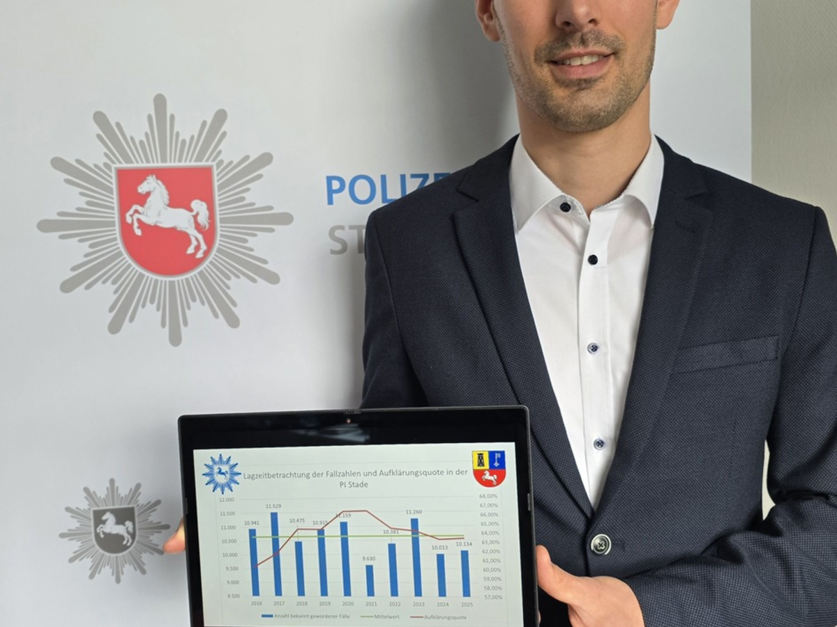 Im Berichtsjahr 2025 wurden für den Bereich der Polizeiinspektion Stade 10.134 Straftaten statistisch erfasst. Dies bedeutet entgegen des Trends in den anderen Polizeiinspektionen der Polizeidirektion Lüneburg einen leichten Anstieg von 121 Taten (+1,21%) im Vergleich zum Jahr 2024.