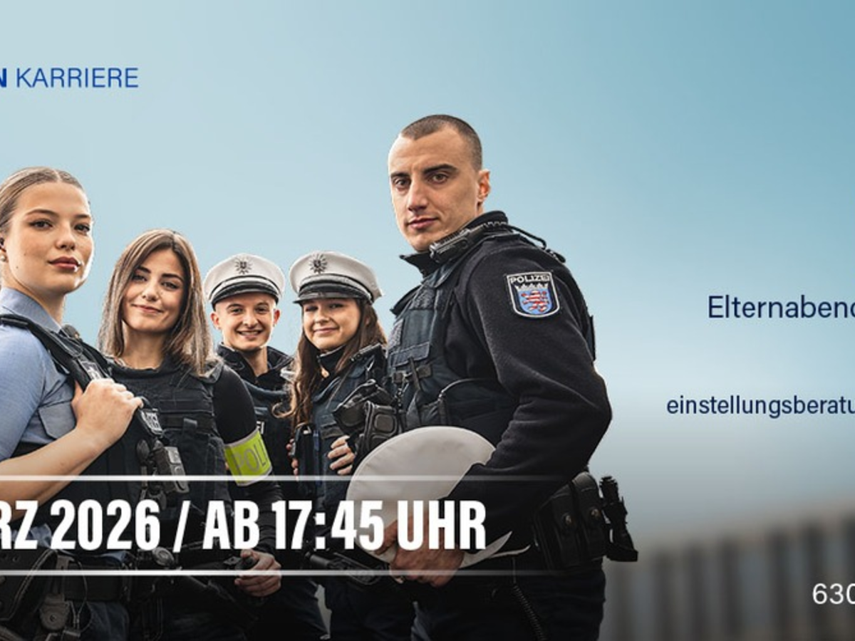06.03.2026 - 09:39:03 | presseportal.deGemeinsam mit Deinen Eltern oder anderen nahestehenden Personen, die für Dich bei der Berufswahl eine wichtige Rolle einnehmen, kannst Du Dich an unserem Infoabend am 24. März 2026 über die Einstellungsvoraussetzungen, das duale Studium sowie Karrieremöglichkeiten bei der Polizei Hessen informieren.