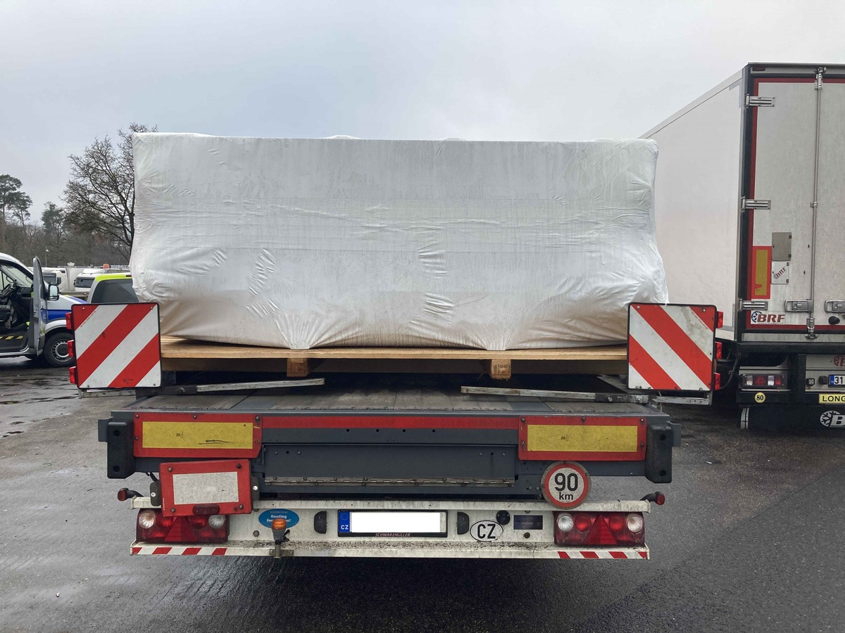 (cb) Ein auffällig breiter Sattelzug konnte am Montagvormittag durch Beamte der Verkehrsinspektion auf der Bundesautobahn 3, in Fahrtrichtung Köln auf der dortigen Tank- und Rastanlage Weißkirchen angehalten und kontrolliert werden. Der 40-Tonner hatte drei Maschinen für den Überseetransport geladen und war auf dem Weg von Pilsen (Tschechische Republik) nach Antwerpen (Belgien). Der Transport hatte eine Gesamtbreite von 3,15 Meter statt erlaubten 2,55 Meter. Für eine Fahrt mit Überbreite ist eine Ausnahmegenehmigung notwendig; diese lag hier jedoch nicht vor, weshalb dem Gespann vorerst die Weiterfahrt untersagt wurde. Die Polizeibeamten führten eine Vermögensabschöpfung in Höhe von 3.500 Euro durch. Der 35-jährige Fahrer des Lasters musste außerdem eine Sicherheitsleistung in Höhe von 90 Euro wegen des nicht genehmigten Fahrens mit Überbreite leisten. Die dafür erforderliche Genehmigung konnte dann am Nachmittag erteilt werden, sodass der Sattelzug gegen 17 Uhr seine Fahrt fortsetzen konnte.