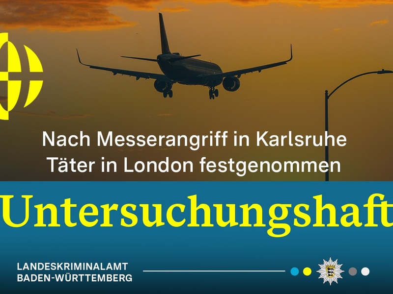 08.01.2026 - 10:47:17Wie bereits berichtet, gelang es der Polizei in Großbritannien am 08.07.2025 in London einen 28 Jahre alten afghanischen Staatsangehörigen festzunehmen. Dieser soll am 04.04.2025 einen 23-jährigen Afghanen am Karlsruher Hauptbahnhof mit einem Messer schwer verletzt haben. Der Festnahme gingen umfangreiche nationale und internationale Fahndungsmaßnahmen voraus, die durch die Zielfahndung des Landeskriminalamts Baden-Württemberg gemeinsam mit der Zielfahndung Großbritanniens durchgeführt wurden. Im Anschluss der Festnahme leiteten die zuständigen Behörden das Auslieferungsverfahren ein. Die Rückführung des Beschuldigten in die Bundesrepublik erfolgte am 05.01.2026 und wurde durch die Zielfahndung vollzogen.