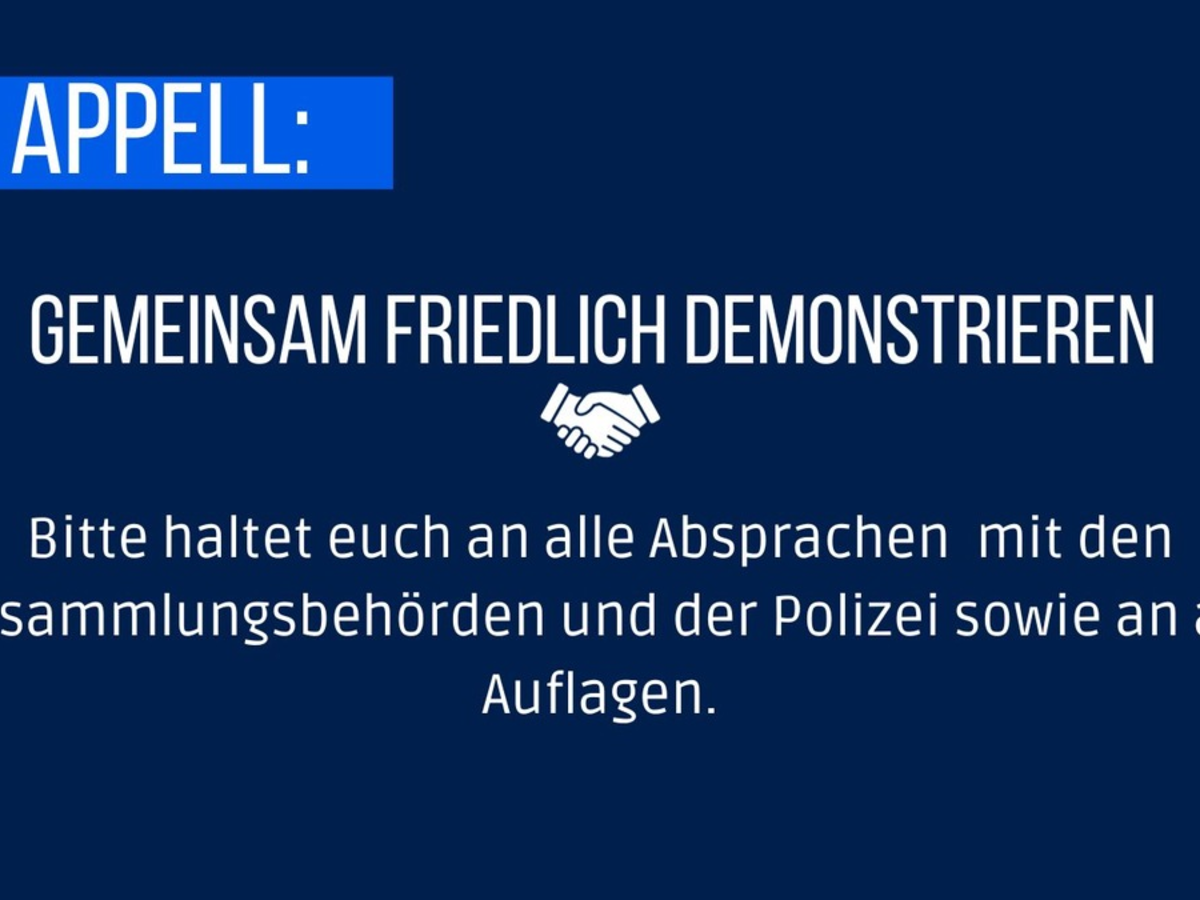 Die Polizei wird das Grundrecht auf Demonstrations- und Versammlungsfreiheit schützen, Beeinträchtigungen Unbeteiligter so weit wie möglich minimieren und für die Verkehrssicherheit sorgen. Gegen Straftaten werden wir konsequent vorgehen und Strafverfahren einleiten.