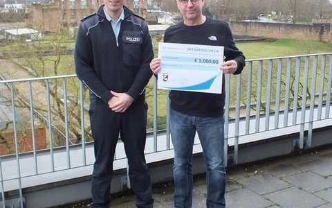 21.12.2023 - 13:32:20 | presseportal.dePolizeioberrat Benedikt Noll, Leiter der Bundespolizei Trier, überreichte den symbolischen Spendenscheck unserem langjährigen Kollegen Rudolf Weber, als Vertreter des Vereins Mukoviszidose e. V.