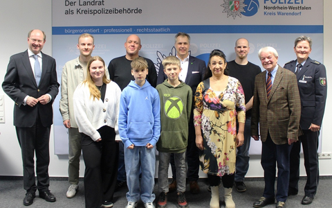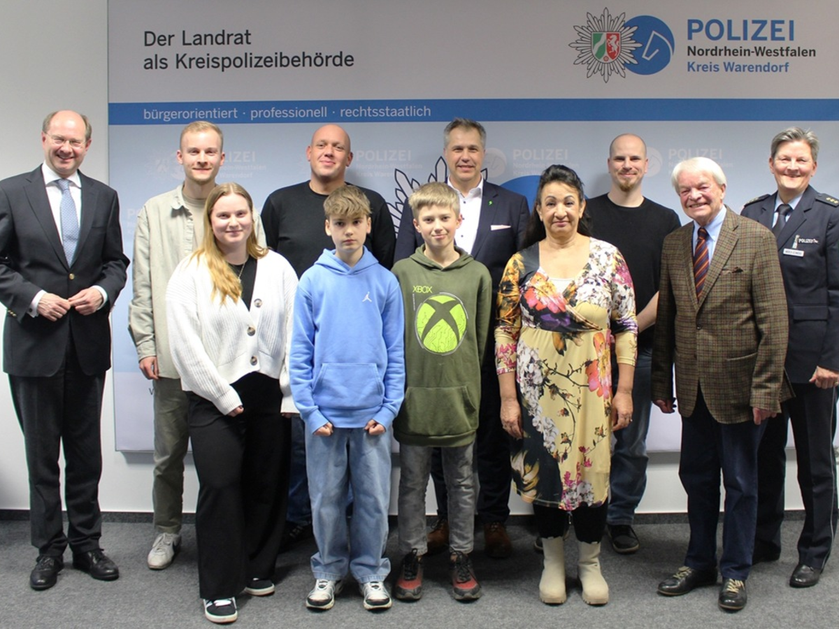 Noel und Justin aus Neubeckum zum Beispiel, 11 und 12 Jahre alt, die beobachtet haben, wie eine Frau gegen ein Auto fuhr und danach flüchtete. Die beiden notierten sich das Kennzeichen und riefen die Polizei. Hermann Reckhaus aus Oelde - mit 87 Jahren der Älteste in der Runde - der Ladendiebe beobachtete und diese sogar verfolgte. Dank seiner genauen Beobachtungen und Beschreibungen, konnten mehrere Diebstähle geklärt werden. Jonah Gellenbeck (26 Jahre aus Bad Wildungen) und Adriane Horn (24 Jahre aus Telgte) beobachteten im Oktober 2024 eine Trunkenheitsfahrt in Telgte. Die beiden folgten dem Fahrer und riefen zeitgleich die Polizei. Oder auch Dirk Willing aus Drensteinfurt. Der 52-Jährige verhinderte durch aktives Eingreifen, dass zwei Fahrraddiebe Erfolg hatten. Er blieb hartnäckig und ließ sich nicht abschrecken. Die Täter flüchteten aber das Fahrrad konnte durch den Zeugen gesichert werden. Der 35-jährige David Garcia aus Telgte griff, zusammen mit weiteren Zeugen, ein und hinderte einen betrunkenen Mann daran, auf einen Fahrradfahrer einzuschlagen. Auch Gabriele Wagner aus Münster bewies im vergangenen Jahr Zivilcourage und rettete einen ertrinkenden Mann aus der Ems in Raestrup. Leben gerettet hat vermutlich auch Philipp Rossow, 37 Jahre aus Freckenhorst. Er half zwei Männern in Ostbevern aus ihrem Auto, nachdem sie einen Unfall hatten. Wenige Sekunden, nachdem die beiden raus waren, begann das Auto zu brennen.