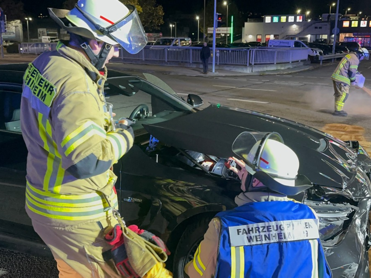 12.11.2025 - 08:50:47 | presseportal.deDie Feuerwehr Weinheim Abteilung Stadt wurde zur Unterstützung der Polizei alarmiert. Sie sicherte die Unfallstelle ab und richtete gemeinsam mit der Polizei eine Vollsperrung der Mannheimer Straße in Fahrtrichtung stadtauswärts ein. Diese blieb für rund eine Stunde bestehen, um die Unfallaufnahme und Aufräumarbeiten sicher durchführen zu können. Bei dem Verkehrsunfall wurde eine Person verletzt und nach der Erstversorgung durch den Rettungsdienst zur weiteren Behandlung in ein Krankenhaus gebracht. Der Fahrer des zweiten Fahrzeugs erlitt leichte Verletzungen, konnte jedoch nach einer Kontrolle vor Ort bleiben.