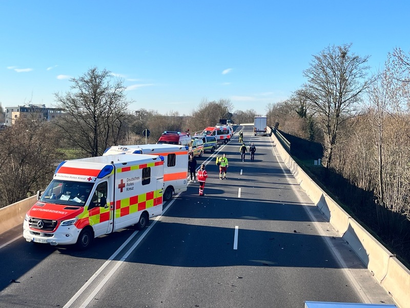02.03.2026 - 14:58:42 | presseportal.deBeim Eintreffen der Feuerwehr zeigte sich eine umfangreiche Unfalllage. Vier Fahrzeuge, ein PKW, ein LKW, ein Kastenwagen und ein Klein-LKW mit einem Anhänger für landwirtschaftlichen Gerät waren beteiligt. Der PKW war mit zwei Insassen in Richtung Weinheim unterwegs. Nach ersten Erkenntnissen der Polizei kollidierte der PKW mit einem fahrenden Lkw und geriet dadurch in den Gegenverkehr. Hier stieß er mit den Klein-LKW und einem Kastenwagen zusammen.