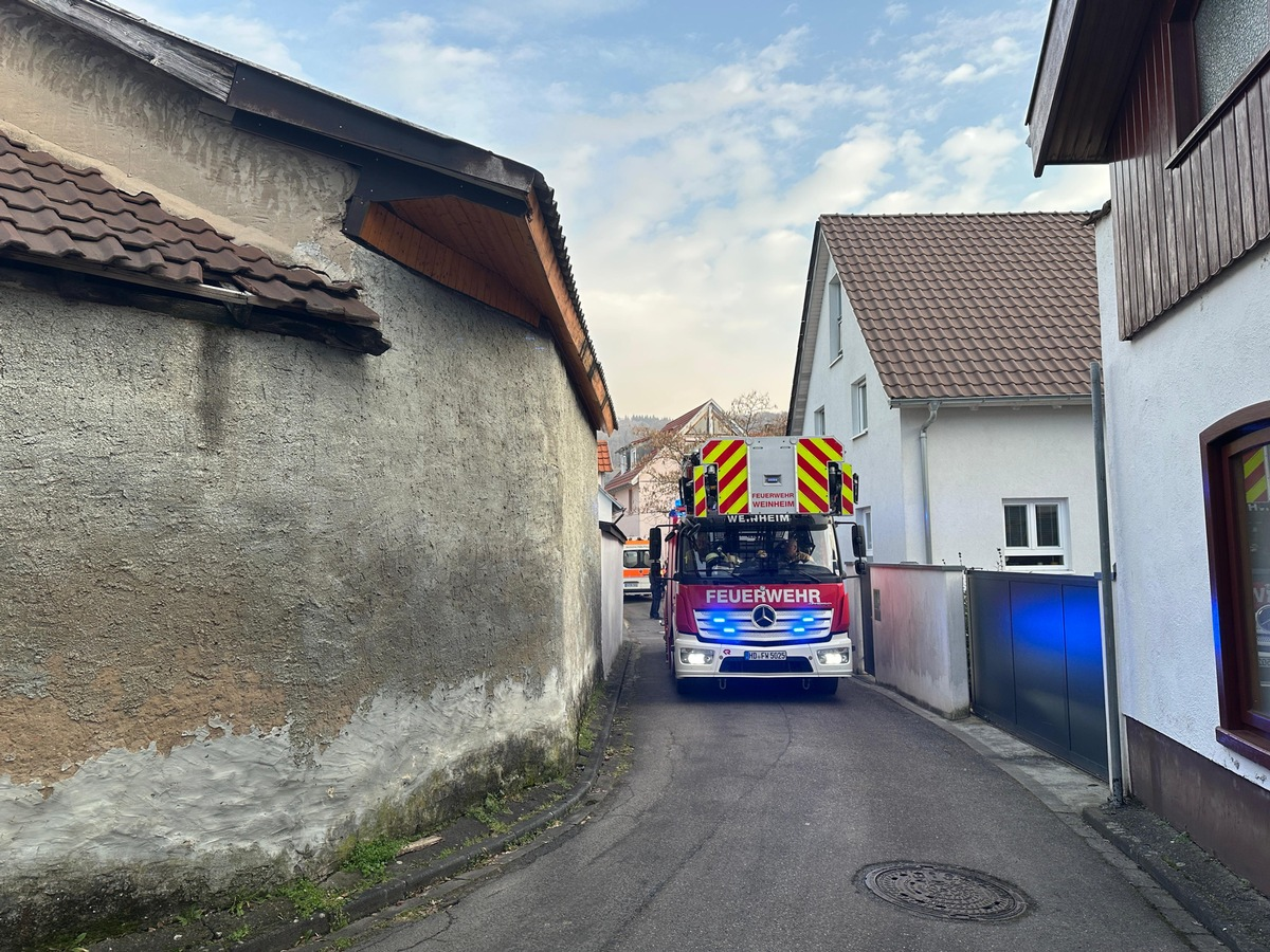 FW Weinheim: Gemeldeter Kaminbrand in der Rosengasse