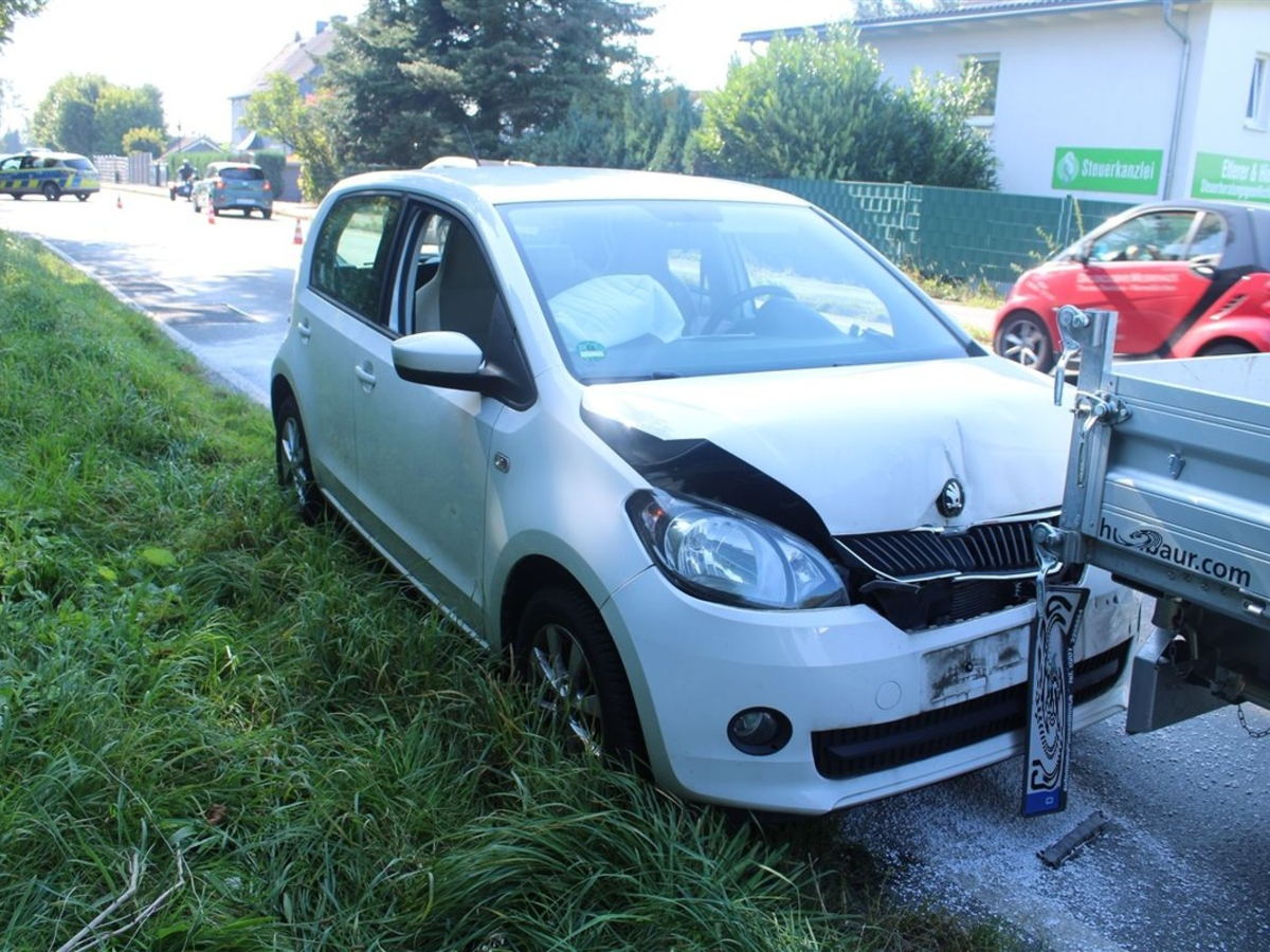 Ein Lkw mit Anhänger befuhr die Unterstraße in Richtung Tente. Plötzlich und ohne erkennbaren Grund fuhr ein dahinterfahrender Kleinwagen der Marke Skoda hinten auf den Anhänger auf.