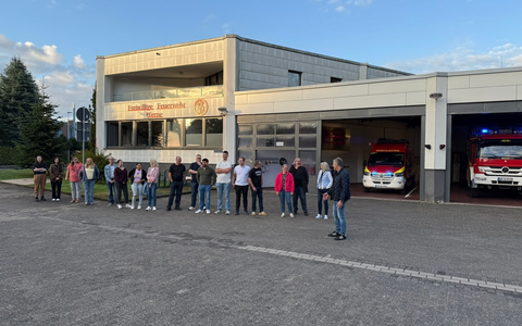 Am Feuerwehrgerätehaus Werne - Mitte standen dann die Kolleginnen und Kollegen des Dezernates V Spalier und haben Werner mit Applaus empfangen. Werner war sichtlich gerührt und sprachlos, was alle Kolleginnen und Kollegen als Überraschung für ihn vorbereitet haben.