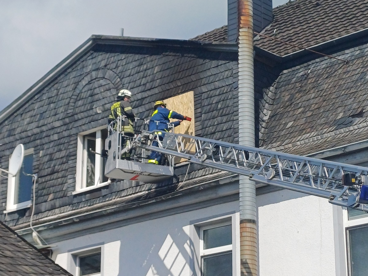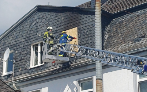 30.05.2025 - 21:08:51 | presseportal.deNach dem Ablöschen des in Vollbrand stehenden Raumes wurden zunächst weitere Absprachen mit der Polizei getroffen. Da kurzzeitig auch eine Rauchentwicklung aus dem Dachgiebel feststellbar war, wurde über die zweite Drehleiter eine kleine Öffnung im Dachbereich geschaffen damit hier mit der Wärmebildkamera kontrolliert werden konnte. Hierbei konnten allerdings keine Glutnester festgestellt werden.
