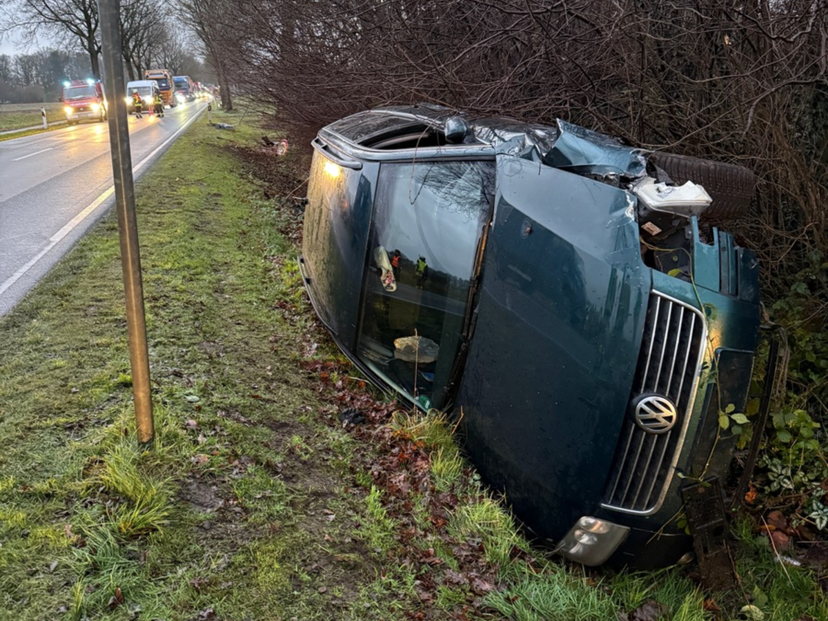FW-ROW: PKW kommt von der Fahrbahn ab und rutscht in den Graben