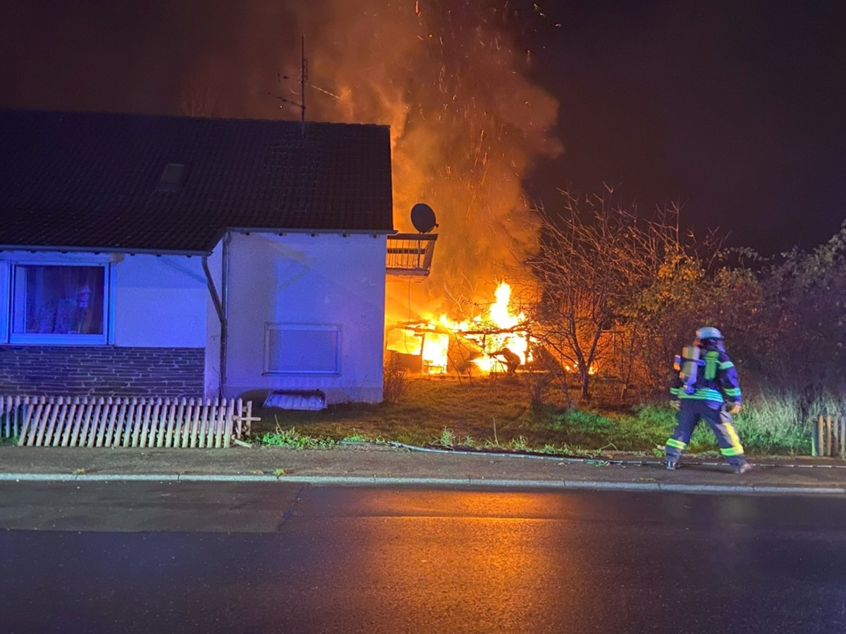 10.11.2025 - 06:53:00 | presseportal.deAls die Feuerwehr und die Polizei vor Ort eintrafen, konnte festgestellt werden, dass ein Holzschuppen, welcher sich hinter dem Anwesen befand, in Vollbrand stand.