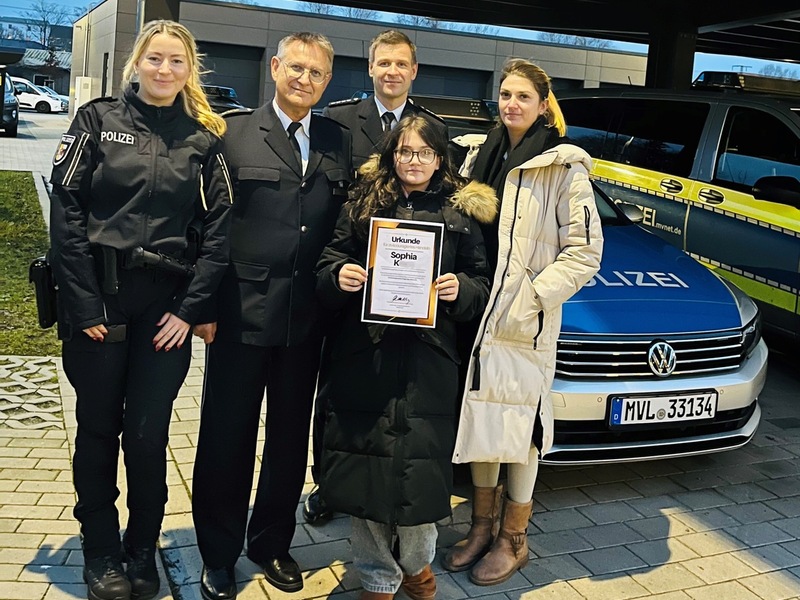 Für ihr vorbildliches Handeln wurde die Zwölfjährige am gestrigen Montag (22. Dezember 2025) in das Polizeihauptrevier Stralsund eingeladen und offiziell geehrt.
