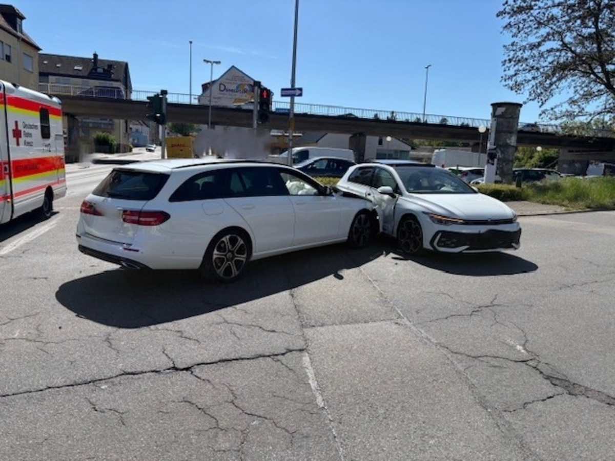 Zweibrücken, Fruchtmarktstraße/Kaiserstraße- 25.04.2026, 11:10 Uhr - Eine leichtverletzte Person und ca. 70.000 Euro Sachschaden sind die Folge eines Verkehrsunfalles zwischen zwei PKW am Samstagvormittag an der Kreuzung Fruchtmarktstraße/Kaiserstraße in Zweibrücken. Eine 37- jährige Fahrerin einer weißen Mercedes E-Klasse befuhr den Kreuzungsbereich von der Kaiserstraße kommend in Richtung Lützelstraße und eine 56-jährige Fahrerin eines VW Golf von der Fruchtmarktstraße kommend in Fahrtrichtung Bubenhauser Straße. An der durch eine Lichtzeichenanlage geregelten Kreuzung kam es zum Zusammenstoß zwischen den beiden Fahrzeugen. Die Fahrerin des VW Golf wurde hierbei leicht verletzt und in ein nahegelegenes Krankenhaus gebracht. Die Unfallgegnerin und die weiteren Insassen der Fahrzeuge blieben unverletzt. Beide Fahrzeuge mussten abgeschleppt werden, sodass es zu kurzzeitigen Verkehrsbeeinträchtigungen kam.