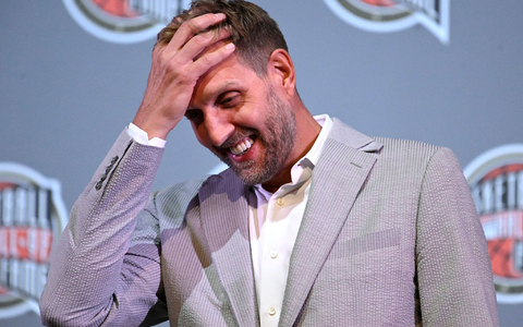 Dirk Nowitzki hat bei der Ehrung zur Aufnahme in die Basketball-Ruhmeshalle seinen Eltern emotional auf Deutsch gedankt.